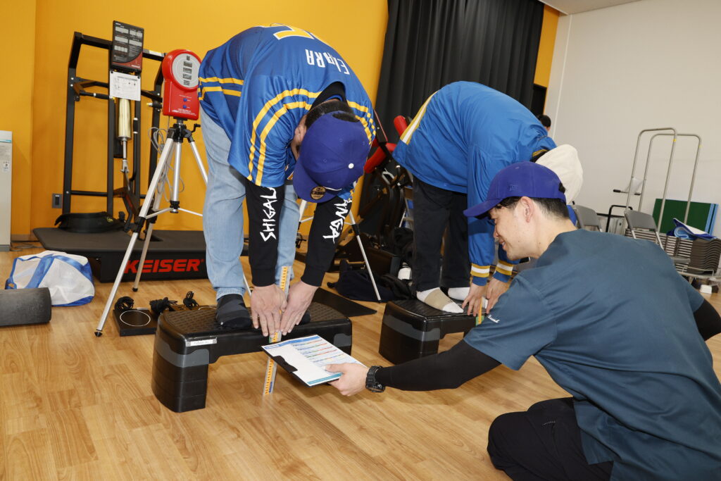 その途中で身体を動かし、会場では健康測定を通して